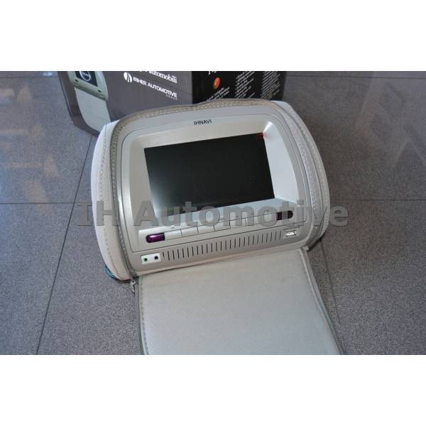 Reposacabezas - cabecero con pantalla TFT digital (800 x 480) integrada de 7" y reproductor de DVD integrado.