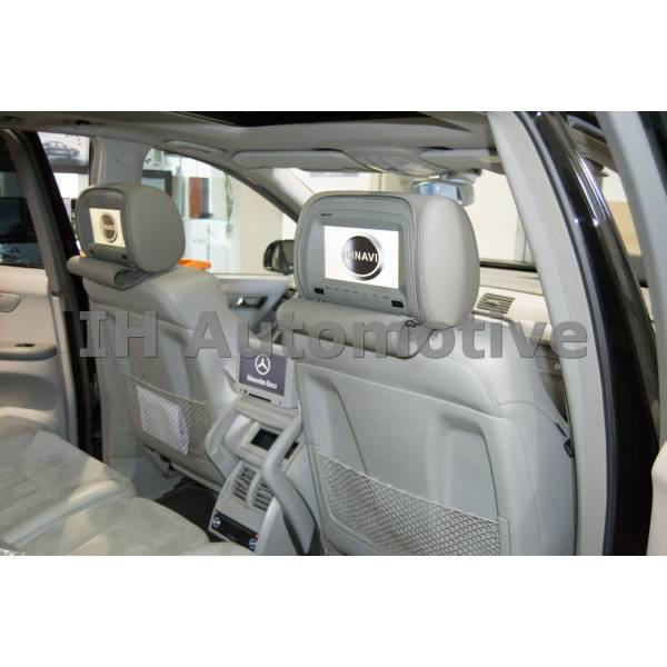 Reposacabezas - cabecero con pantalla TFT digital (800 x 480) integrada de 7" y reproductor de DVD integrado.