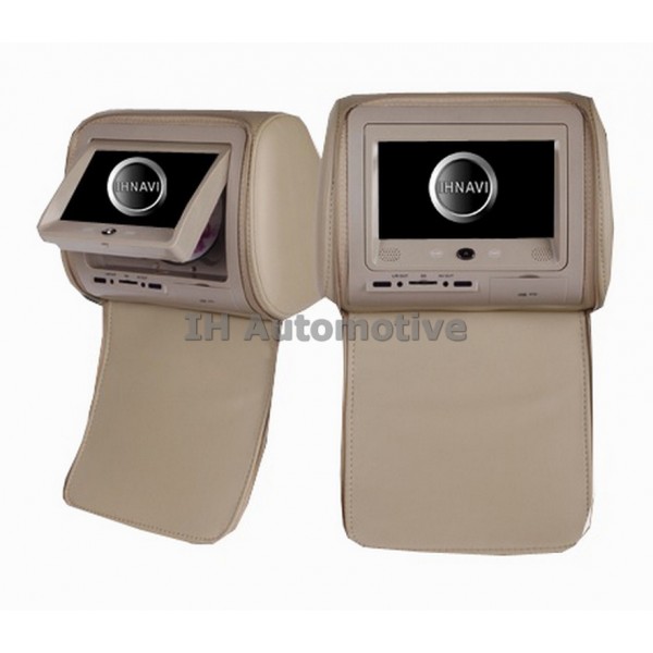 Reposacabezas - cabecero con pantalla TFT digital (800 x 480) integrada de 7" y reproductor de DVD integrado. Pantalla totalmente táctil.