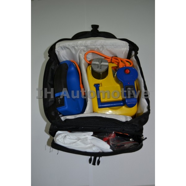 Pack de gato hidráulico y pistola neúmatica portatiles con conexión al mechero y bateria.